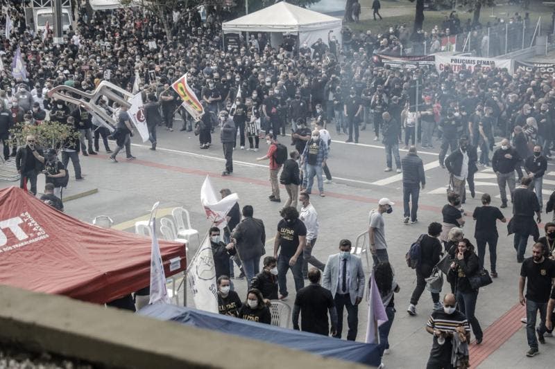 Em razão da crise da Covid-19, o acesso às galerias da Assembleia Legislativa (Alesc), onde sindicatos e entidades de servidores costumam protestar em votações polêmicas, não foi aberto ao público. Apenas tiveram acesso ao local lideranças que fizeram inscrição prévia. Com isso, os manifestantes protestaram em frente à Assembleia, onde até um telão foi instalado. No entanto, pouco depois do início da sessão, parte deles tentou invadir a Assembleia, o que motivou a ação da polícia para evitar a entrada e resultou no conflito e na correria registrados pouco depois das 14h.