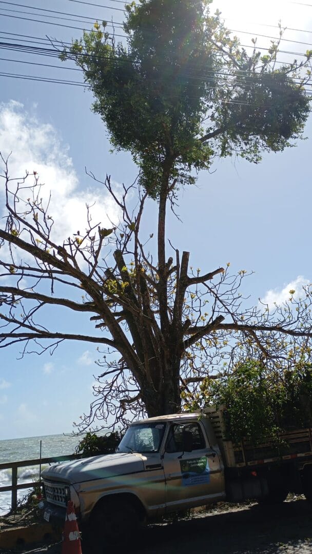 De acordo com a prefeitura, a poda e a “supressão das árvores” foram executadas e pagas pela Associação de Amigos da Prainha da Saudade (Sapinhas), com aval do Instituto do Meio Ambiente de Penha. Um laudo da Defesa Civil mostrava que os sombreiros e jambolões ao longo da orla das duas praias necessitavam de um trabalho regenerativo para evitar acidentes, como queda de galhos em banhistas.