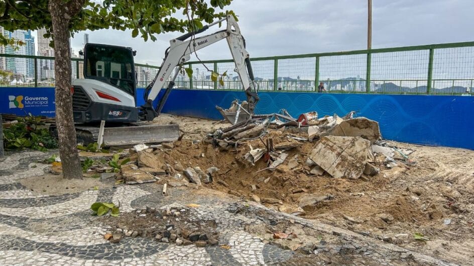 Pontos de venda de milho e churros na Praia Central de Balneário Camboriú foram demolidos pela prefeitura nesta terça-feira (28). O governo local disse que a retirada das estruturas é necessária para o avanço das obras no trecho quatro da reurbanização da orla.