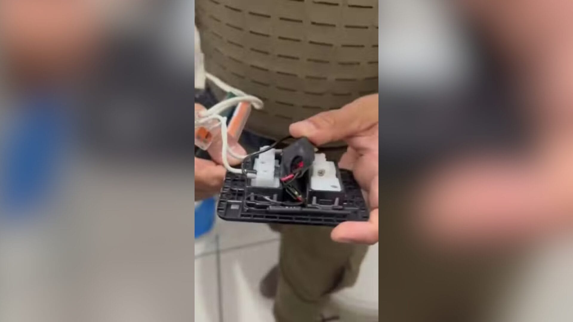 O dispositivo foi descoberto por uma funcionária recém-contratada. Enquanto utilizava o banheiro, ela percebeu uma luz piscando no conector da tomada. Ao observar com mais atenção, encontrou o equipamento escondido e que possuía um cartão de memória.