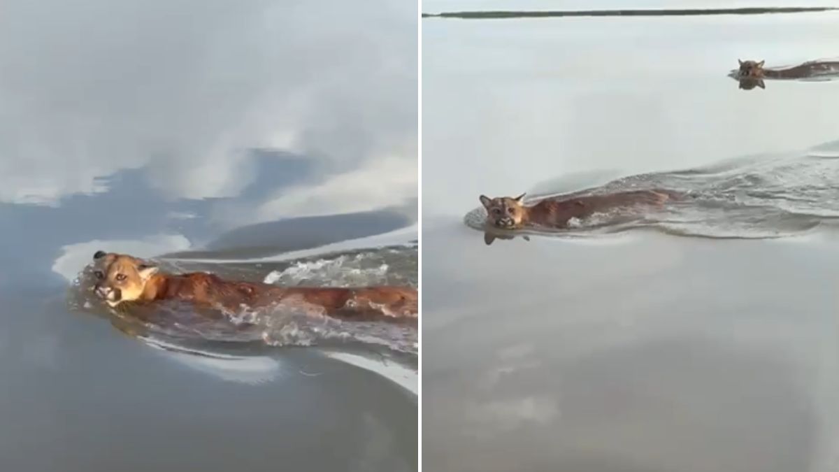 As imagens mostram três felinos nadando no meio de um rio, enquanto pessoas se aproximam dos animais. Por alguns segundos, as pessoas tentam interagir, de longe, com os mamíferos, e narram as ações no vídeo. Além disso, os autores afirmam que estariam em um local chamado Palmital. Em SC, o Canal do Palmital é um braço da Baía da Babitonga, que se estende ao norte da Praia da Vigorelli, em Joinville, com a nascente em Garuva.