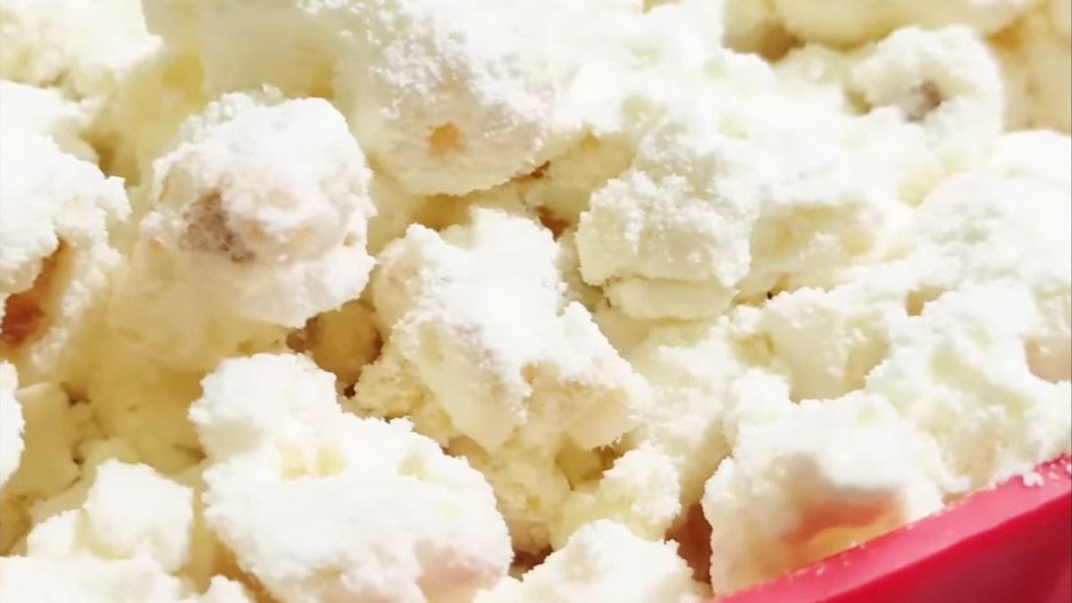 Dica para melhorar ainda mais a pipoca: use panela comum se não tiver pipoqueira. O leite em pó quente é o truque para textura profissional e sabor fixo