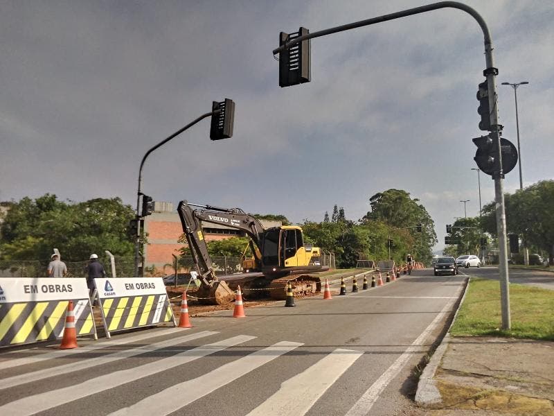 O acesso à UFSC, pela Rua Deflino Conti, em frente ao chamado Trevo da Dona Benta, em Florianópolis, está bloqueado nesta segunda-feira (14). Desde o último sábado (12), a Companhia de Águas e Saneamento (Casan) faz escavações no local para colocar a tubulação do emissário de esgoto da região. A previsão é que o trabalho persista até as 17h.