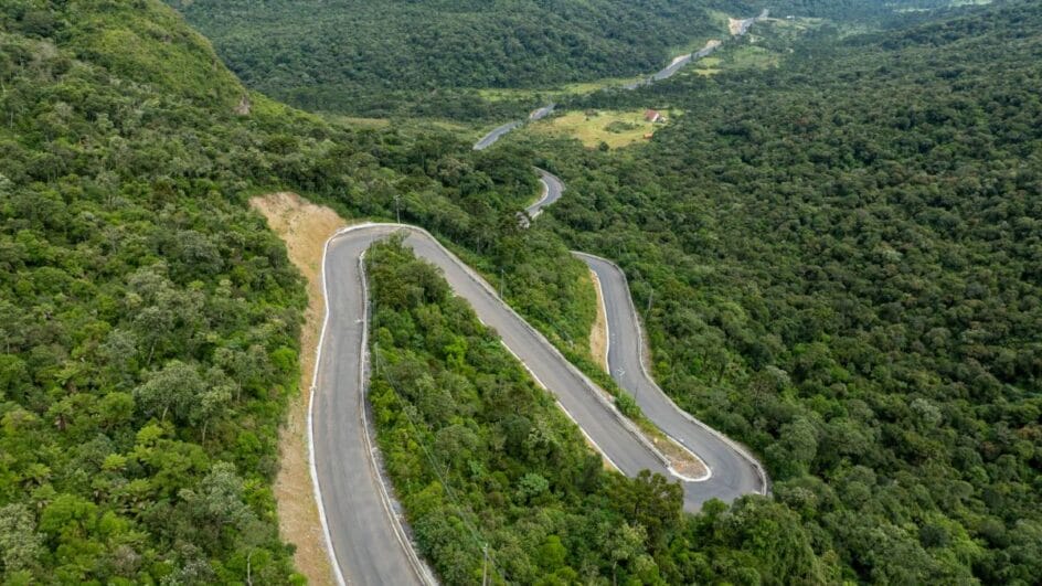Os outros dois quilômetros devem receber pavimentação em concreto, solução utilizada em pontos mais íngremes e críticos da serra. Além disso, obras de contenção em áreas consideradas mais sensíveis da encosta também estão sendo realizadas.
