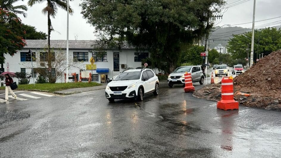 Outra intervenção já concluída foi a adequação do canteiro da Praça Agenor Povoas Júnior, na entrada da Rua Professora Maria Flora Pausewang. A mudança prepara o espaço para a instalação de uma nova faixa, o que vai melhorar o retorno para o bairro Santa Mônica e reduzir retenções no local.