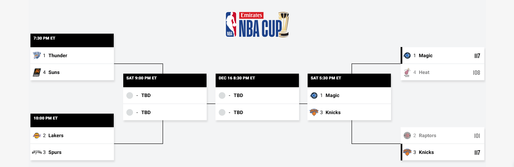 As 30 franquias da NBA disputaram a competição, também conhecida como In-Season Tournament, como acontece durante a temporada regular.