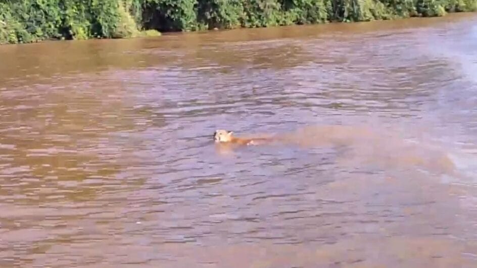 Uma onça-parda, o segundo maior felino das Américas, foi vista atravessando o Rio Paraná, na cidade de Guaíra, que faz fronteira com o Paraguai. Ela acabou sendo “escoltada” pela Polícia Federal, que fez o flagrante do avistamento em um vídeo na última sexta-feira (13).