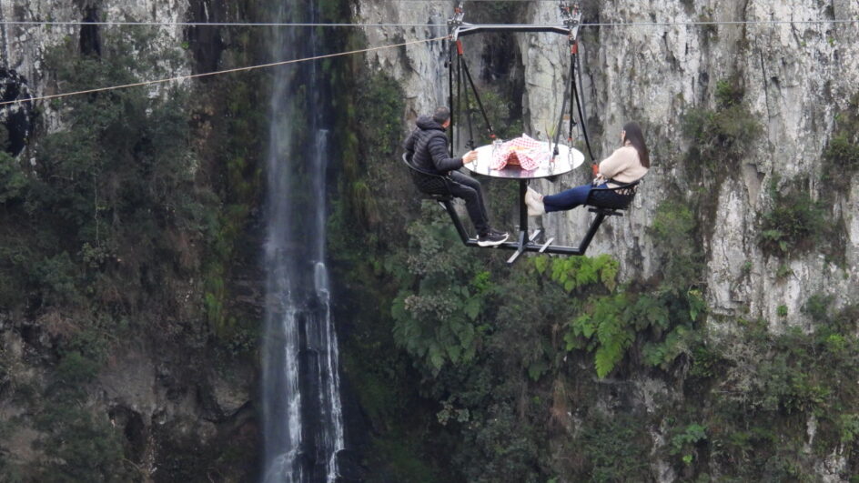 – Nós temos a bike mais alta do país, tem uma demanda muito alta. Nós temos arvorismo contemplativo, tem balanço ao infinito profissional, que projeta sete metros no cânion de cerca de quase 200 metros de altura. Temos tirolesa em curva, que é um produto novo. No país é a quarta, são produtos que existem poucos no país. Temos também o SkyTable, que é aquele piquenique nas alturas. São várias atividades no parque, desenvolvido para trazer as pessoas para que interajam com a natureza.