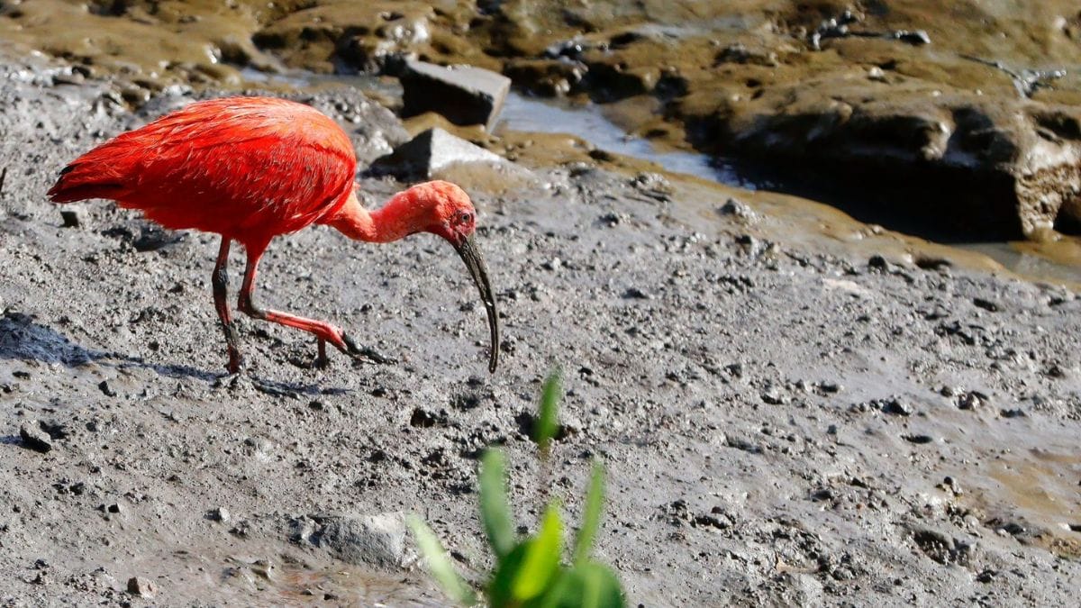 Conforme o WikiAves, o guará mede cerca de 50 a 60 centímetros e possui bico fino, longo e levemente curvado para baixo. O site ainda detalha que a espécie se alimenta, principalmente, de caranguejos.