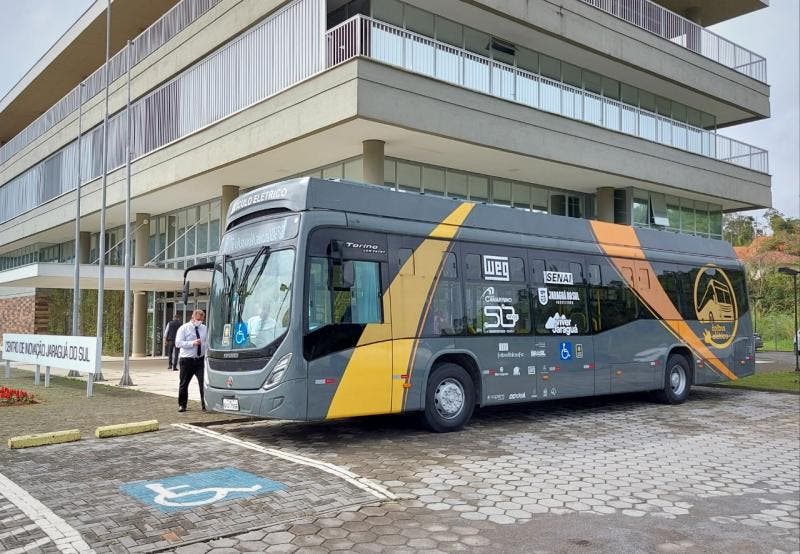 O eBus, um projeto criado em parceria entre a WEG e a UFSC, passará a circular em Jaraguá do Sul nos próximos dias. O ônibus é 100% elétrico e oferece passeios turísticos gratuitos pela cidade.