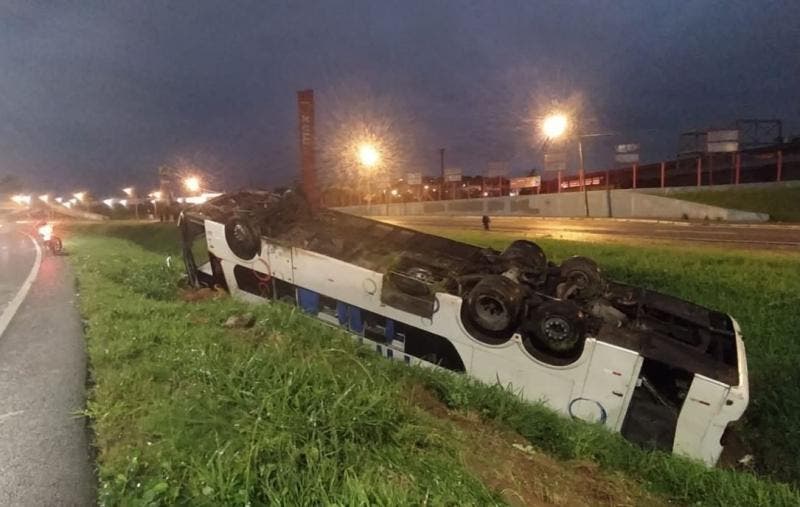Um ônibus saiu da pista e capotou na lateral da Via Expressa em Florianópolis na madrugada desta segunda-feira (2). Segundo a Guarda Municipal (GMF), o acidente ocorreu na altura do bairro Capoeiras.