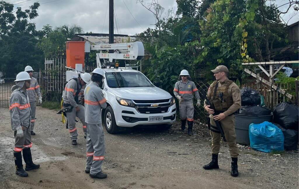 Cerca de 95 casas do bairro Paranaguamirim, na Zona Sul de Joinville, tiveram cortes de luz após após ligações irregulares da rede elétrica serem desinstaladas na manhã desta quarta-feira (11).