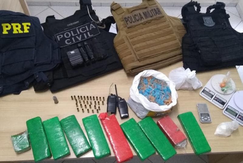 A operação apreendeu ainda 10 tijolos de maconha, 400 gramas de crack e 100 gramas de cocaína, além de balanças e pinos para embalar cocaína.