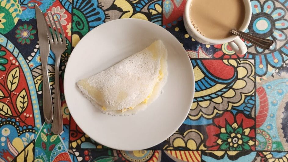 Uma dica é fazer crepioca: misture 2 colheres de goma com ovo batido. O ovo acrescenta proteínas e gorduras boas, equilibrando a refeição.