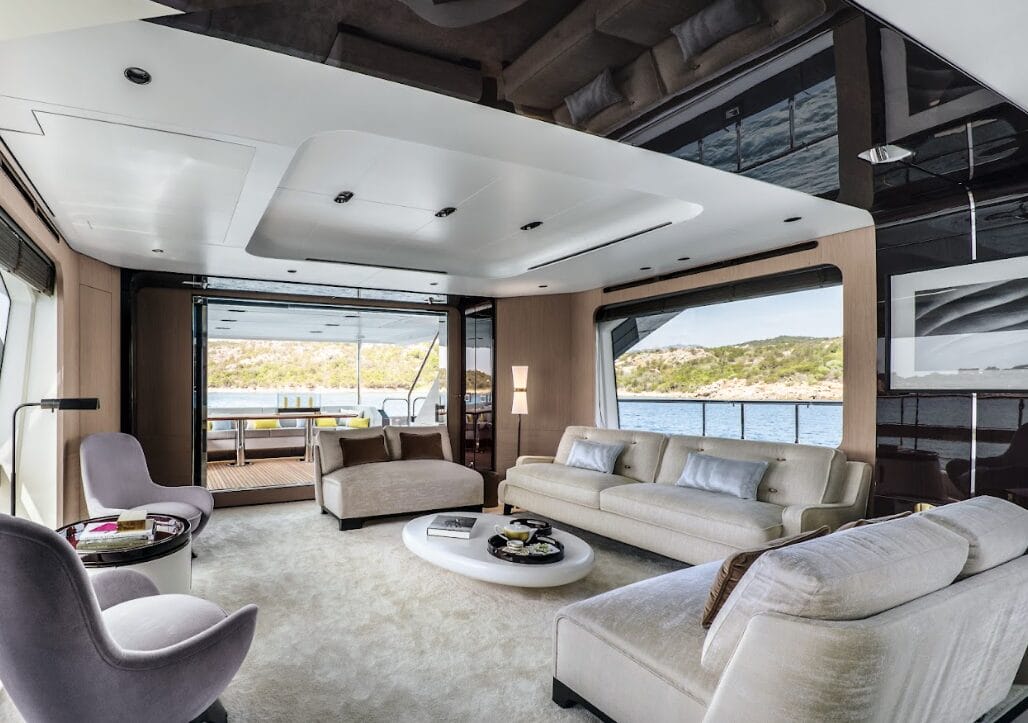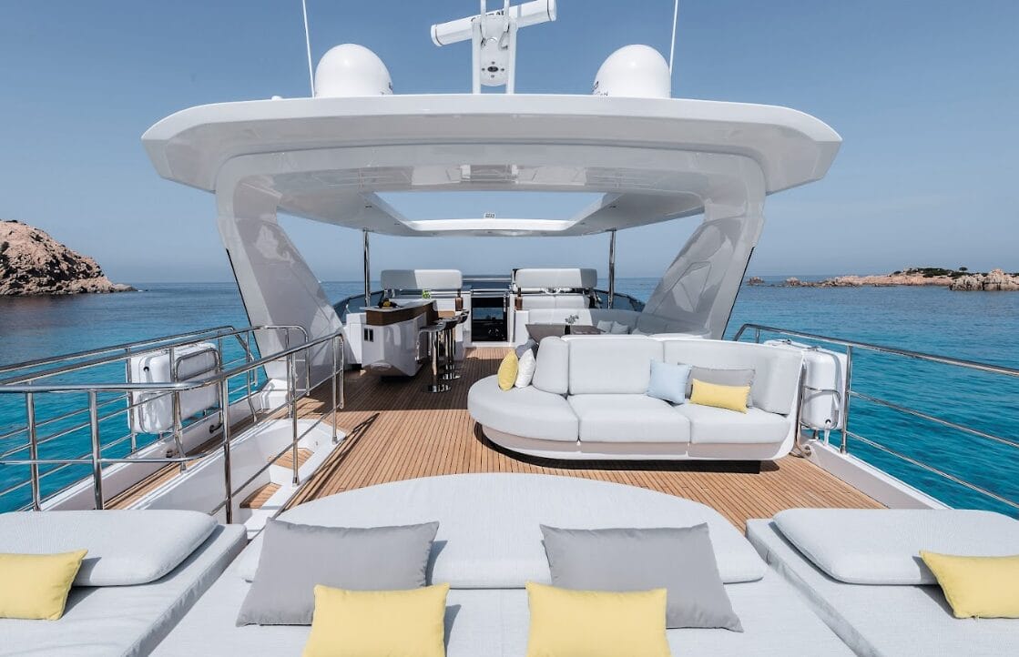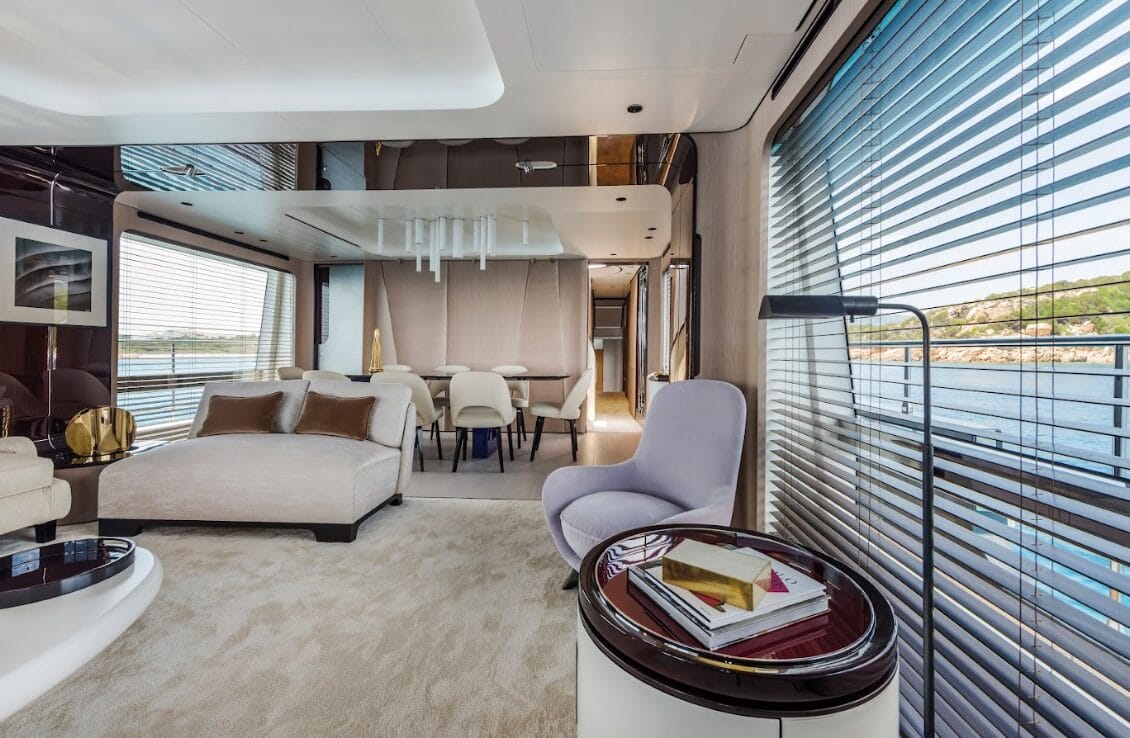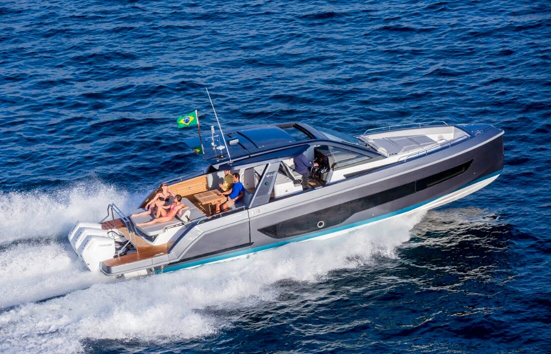 Já o Azimut Grande 27 Metri é o mesmo modelo de iate escolhido por Cristiano Ronaldo. Com mais de 350 metros quadrados, será o maior em exposição no evento. São três andares, cinco suítes, jacuzzi, beach area e ambientes que remetem a uma mansão flutuante. A embarcação italiana é voltada para longas estadias no mar, com alto padrão de conforto e privacidade.