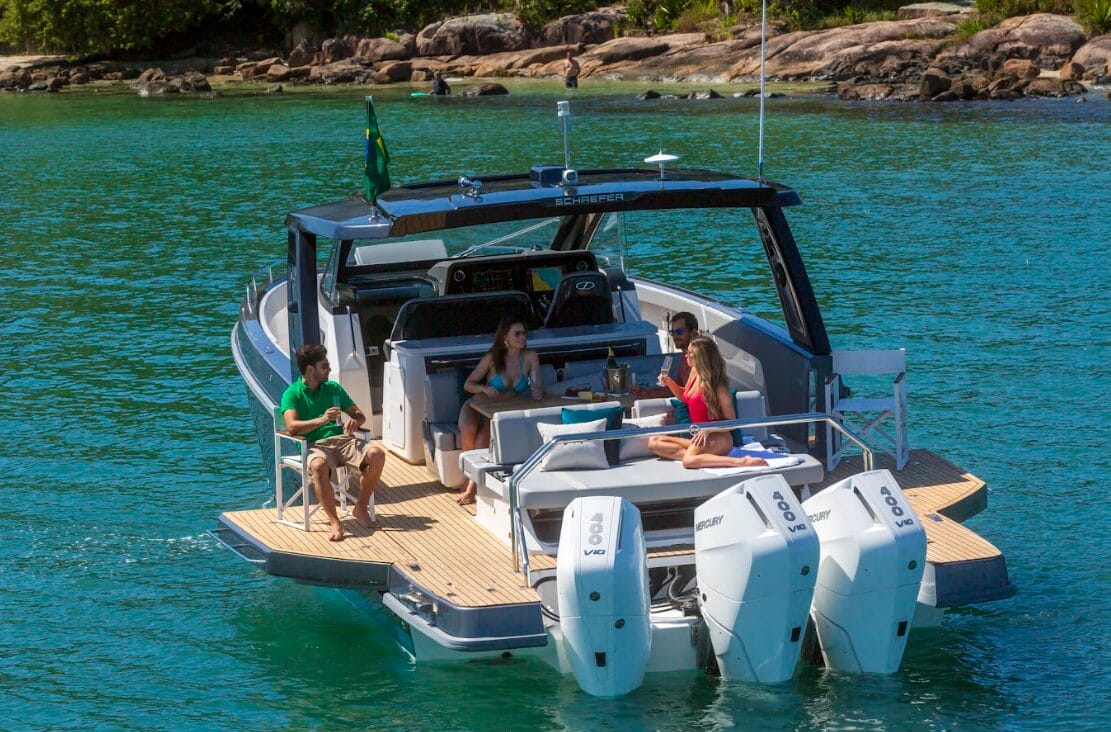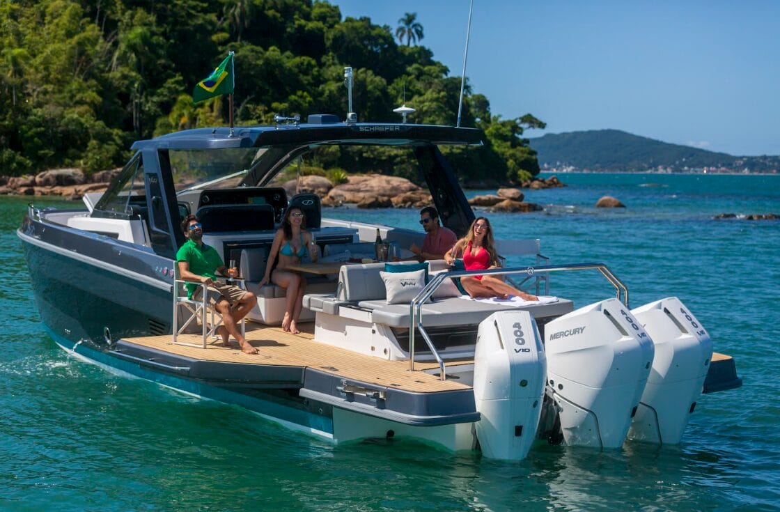A lancha Schaefer V44 foi o modelo adquirido recentemente por Gisele Bündchen. Produzida no Brasil, a embarcação de 44 pés chama atenção pelo visual esportivo e pelo alto padrão de acabamento. Com varandas laterais retráteis que ampliam o espaço de convivência, espaço gourmet na popa, teto solar, pernoite para até quatro pessoas e ar-condicionado de série, o barco combina conforto, funcionalidade e navegação segura.