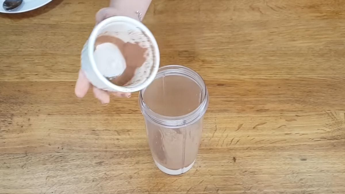 Em um liquidificador, combine o leite de coco, o cacau em pó e as bananas bem maduras cortadas em pedaços. A banana madura atua como adoçante natural e contribui para a textura cremosa.