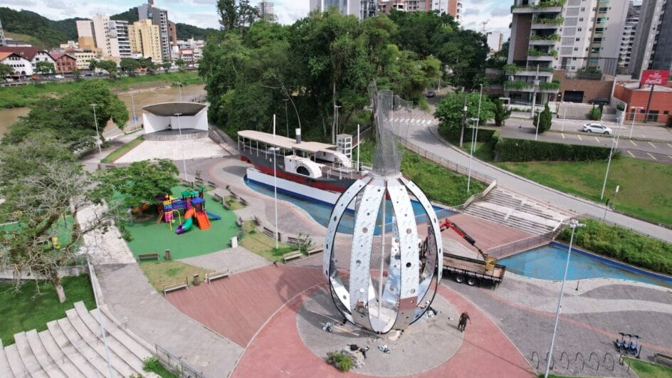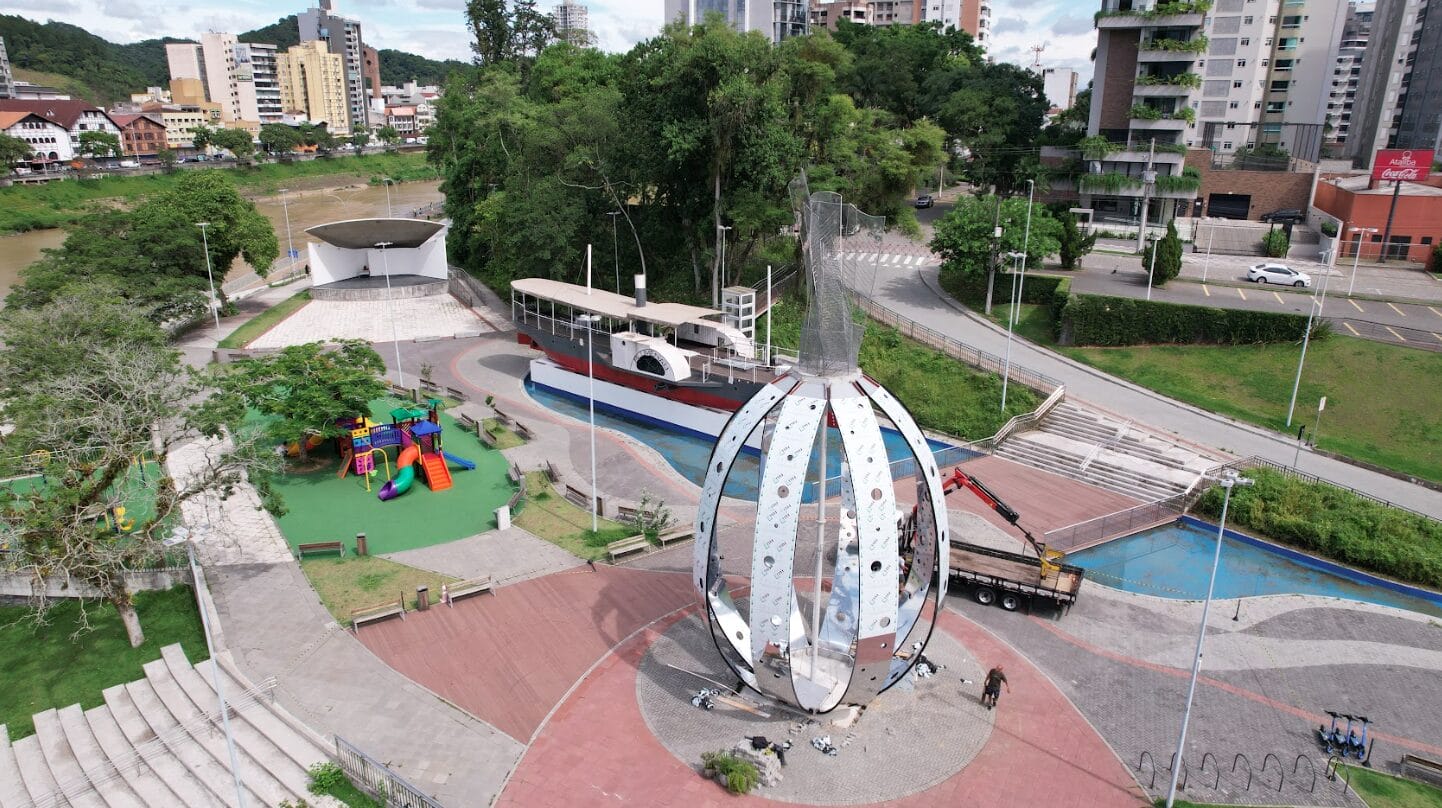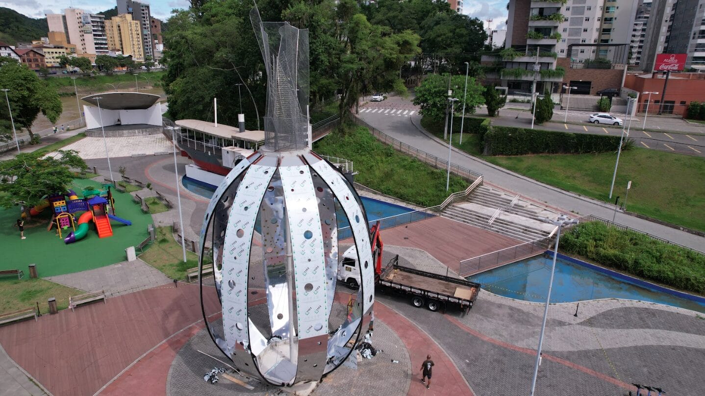 O enorme ovo que virou assunto em Blumenau na Páscoa de 2023 voltará a fazer parte da decoração para a data neste ano. Agora na Prainha, a instalação deve ser concluída até o próximo sábado (27). Na primeira vez que foi usada, a obra de R$ 332 mil ficou na Vila Germânica e gerou críticas de integrantes do setor cultural blumenauense por conta do valor.