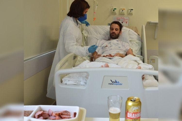 Tudo começou depois que o paciente viu imagens de um churrasco em na TV do quarto em que está se recuperando do coronavírus. Depois de uma avaliação com médicos, nutricionistas e com uma fonoaudióloga, o homem de 40 anos pôde matar a vontade.