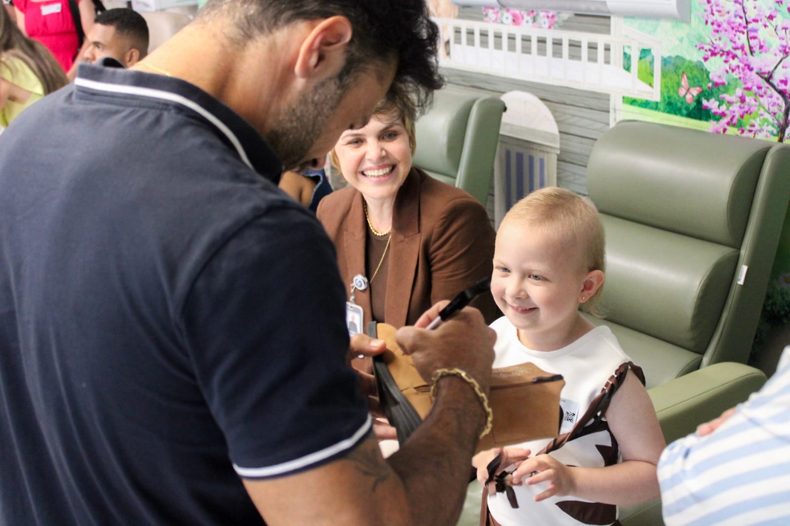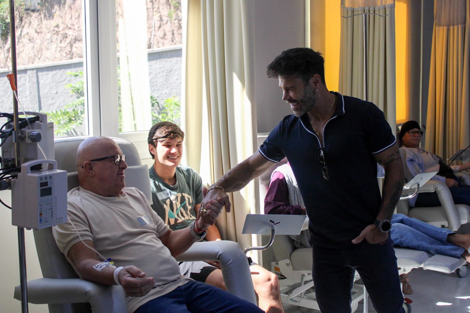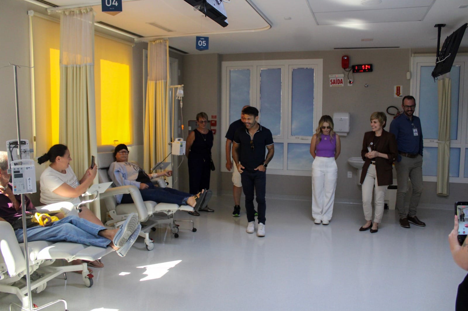 Marcos visitou o hospital acompanhado da esposa Lucilene Marchioto e dos gestores do Fazzenda Park Resort, que organizaram o encontro. Por onde passou, o sertanejo fez questão de parar, conversar com os pacientes e familiares, além de tirar fotos e dar autógrafos.