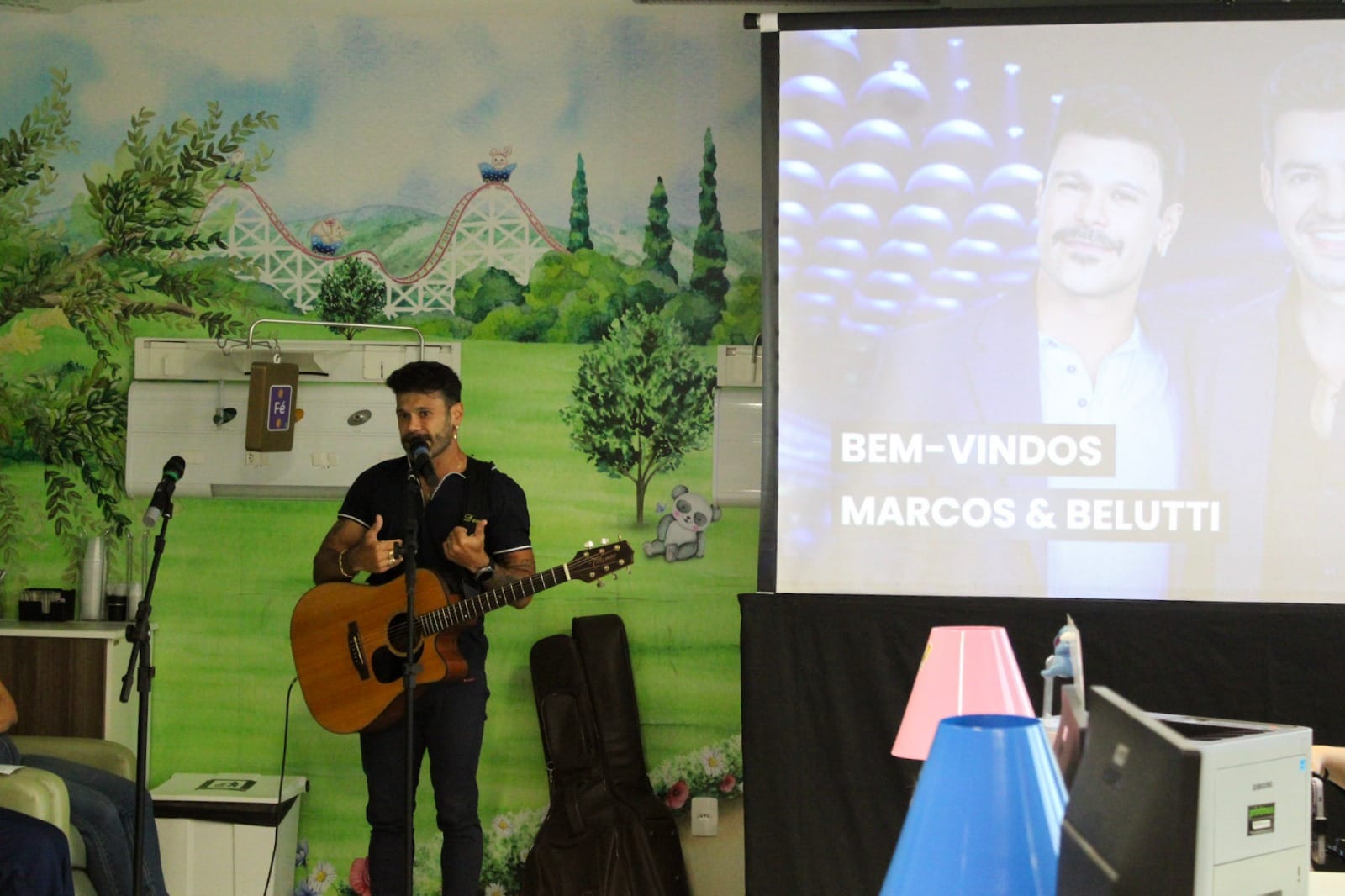 Pacientes têm show particular com Marcos, da dupla com Belutti, em hospital de Blumenau (Foto: HSA, Divulgação)