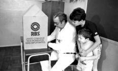 Na foto acima, Acácio Bernardes vota acompanhado de Caio (camiseta escura) e Napoleão. Nesta eleição, Acácio era candidato a governador do Estado.