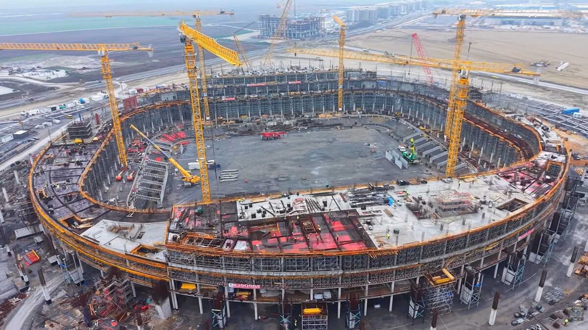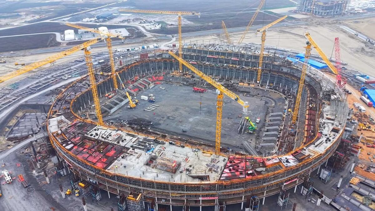 Um vídeo do canal SERGIO_SPECTOR, no YouTube, publicado na última segunda-feira (23), mostra o avanço das obras do bilionário estádio, que terá capacidade para mais de 52 mil espectadores e espera-se que apresente uma fachada e arquibancadas repletas de vegetação.