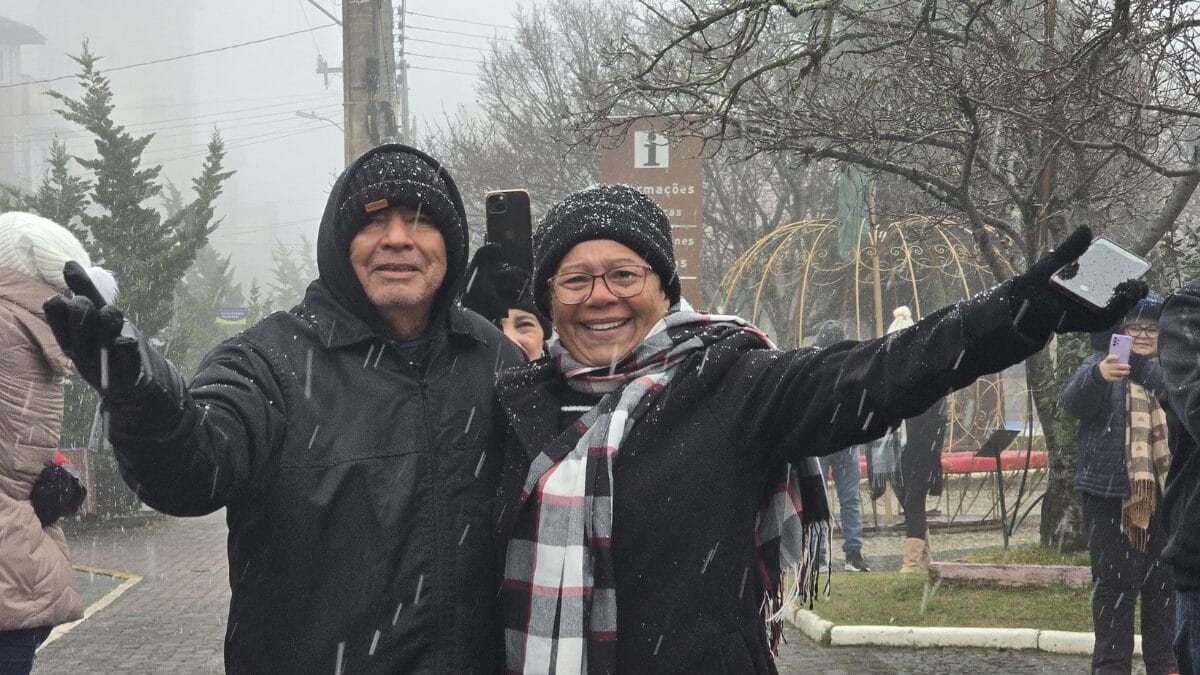 Imagens impressionantes mostram emoção de turistas com terceira neve do ano em SC