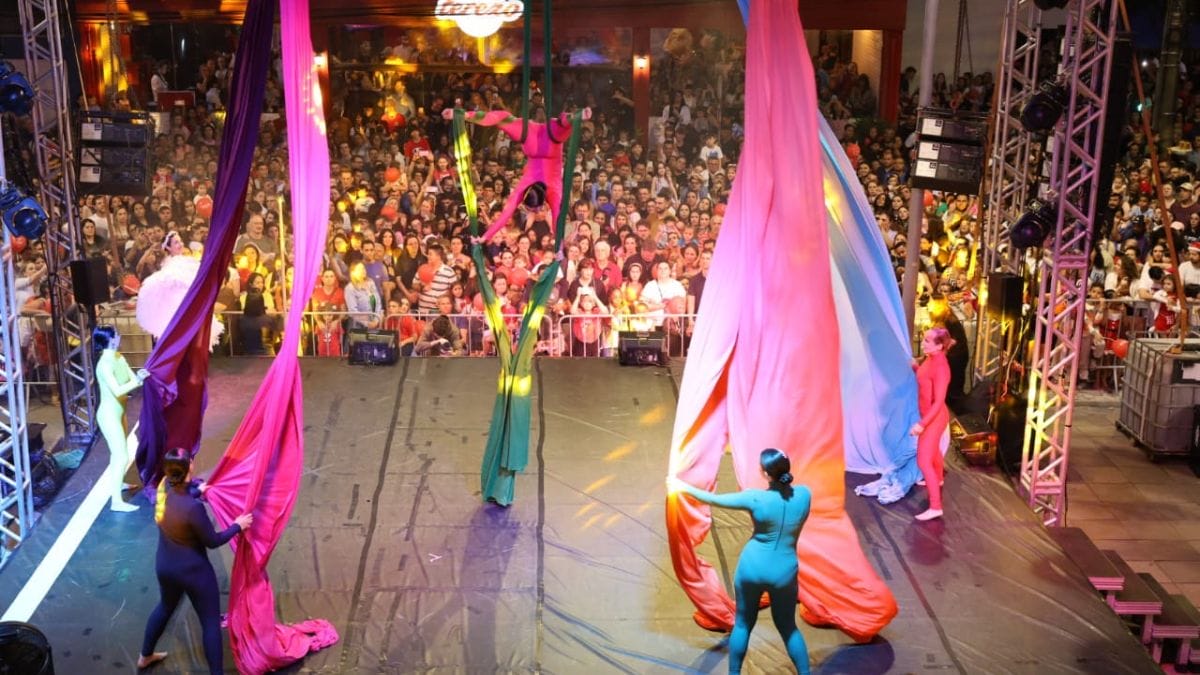O espetáculo inédito de acrobacias aéreas encantou famílias, crianças e visitantes que lotaram a rua Pedro Lobo para acompanhar a apresentação criada especialmente para esta edição. O show foi conduzido pelo Art Fitness Studio Sabrina Lermen, que apresentou uma performance repleta de poesia em movimento, cores vibrantes, acrobacias de tirar o fôlego e coreografias que celebram o encontro, a vida e o espírito de recomeço que marca o Natal.