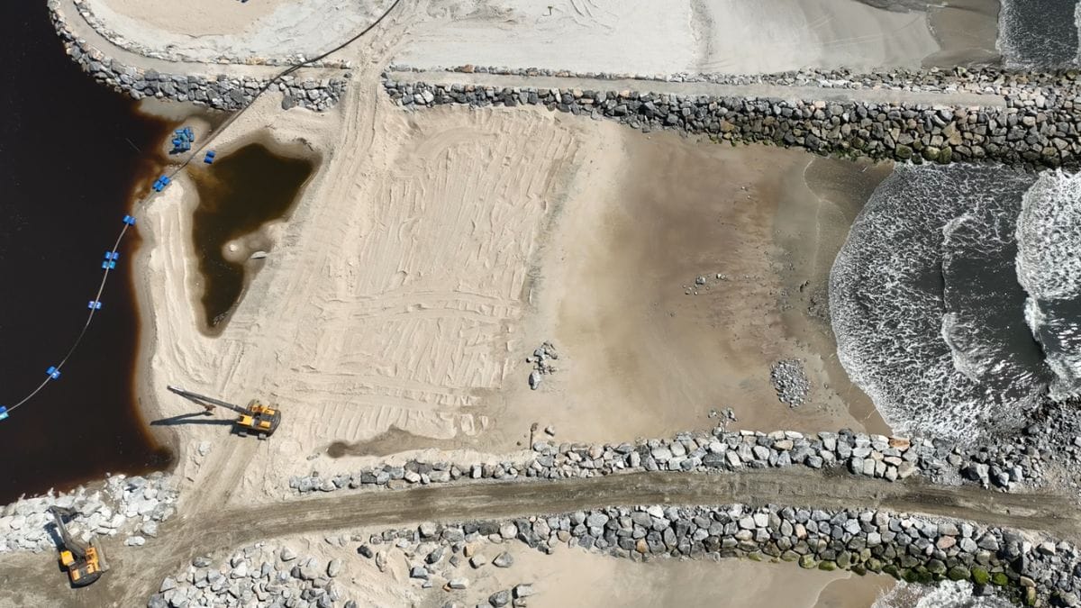 O projeto tem três pilares principais: a proteção costeira, para mitigar os efeitos da erosão marítima que atingia a orla, garantir a profundidade e a segurança para a entrada e saída de embarcações, beneficiando diretamente os nossos pescadores locais, e melhorar a oxigenação e o fluxo das águas do rio com o mar.