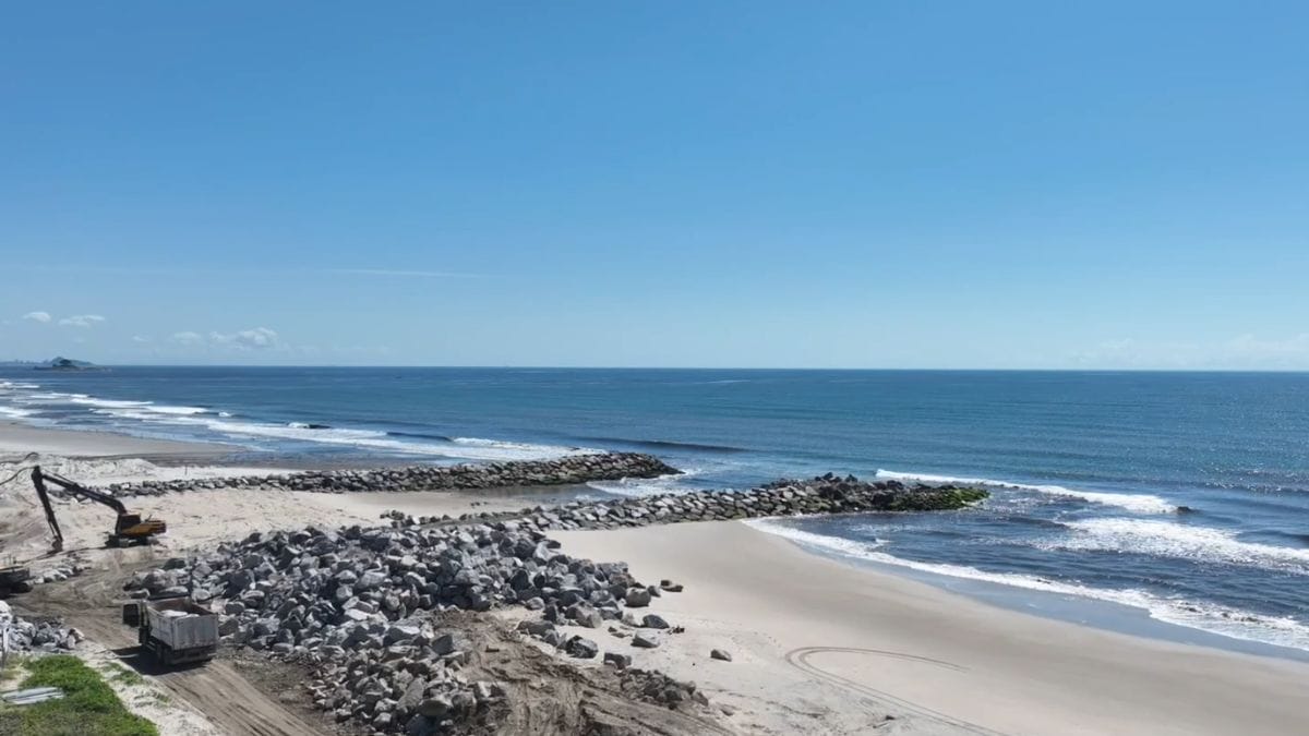 Conforme a prefeitura, trata-se de uma obra de engenharia pesada baseada no enrocamento. Basicamente, grandes blocos de rocha são transportados e posicionados de forma estratégica para criar “braços” que avançam mar adentro. Esses braços servem como barreiras contra a força das ondas e das correntes, direcionando o fluxo da água.