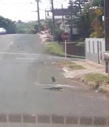 Um pássaro atacou um lagarto que tentava atravessar uma rua no bairro Passo dos Fortes, na última sexta-feira (23), em Chapecó. A briga inusitada foi registrada pela cabelereira Cleusa Souza, que fez o flagrante e postou nas redes sociais. Assista: