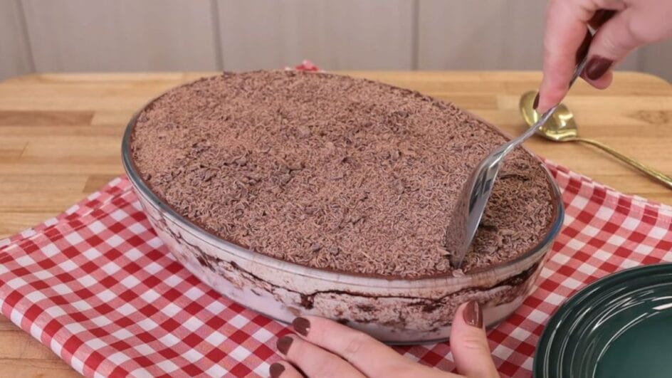 Antes de servir, polvilhe cacau em pó e adicione raspinhas de chocolate ralado para um toque crocante e decorativo.