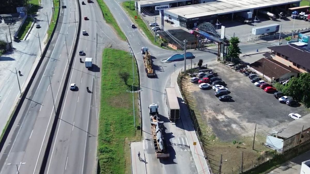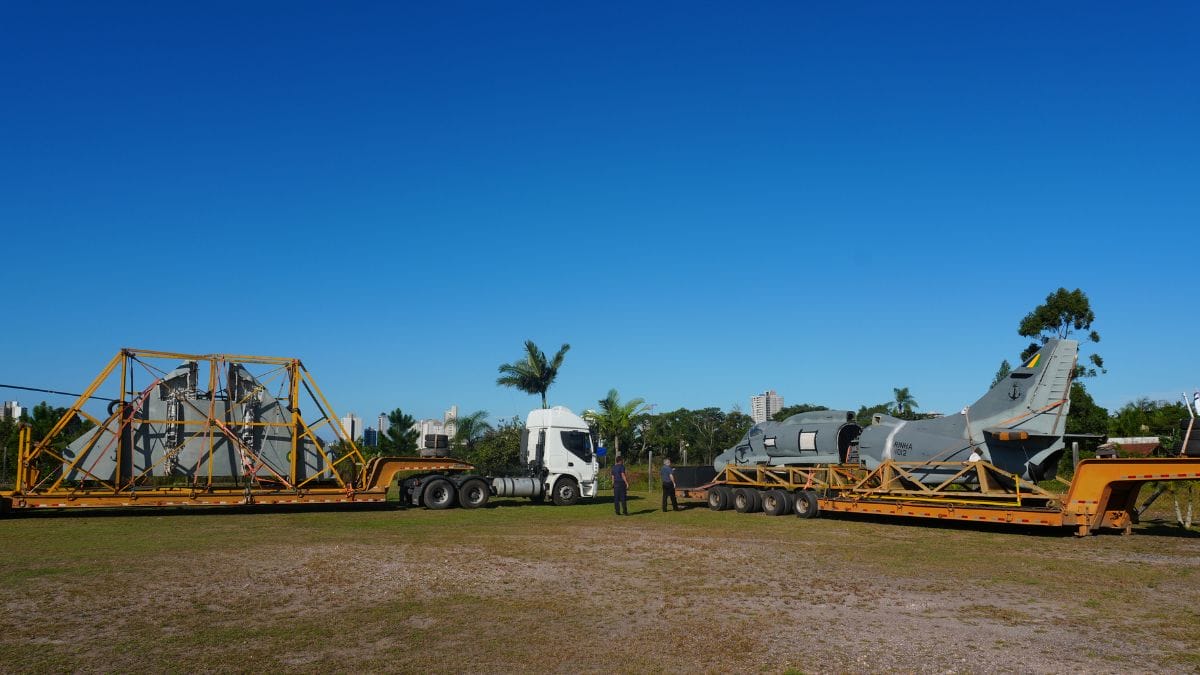Peças de um avião caça da Marinha chamaram atenção de quem passava pela BR-101, em Santa Catarina, na última sexta-feira (28). A aeronave A-4 Skyhawk tinha como destino a cidade de Balneário Piçarras, no Litoral Norte catarinense. Partes enormes do avião foram vistas ao serem transportadas por um caminhão até o Museu Oceanográfico Univali.