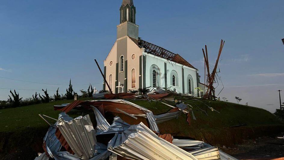 Uma história de 107 anos marcada por um episódio triste. Fundada como capela em 1916 e reconstruída como paróquia em 1945, a igreja São João Batista foi atingida, há uma semana, por um temporal que deixou rastros de destruição em São João do Itaperiú.