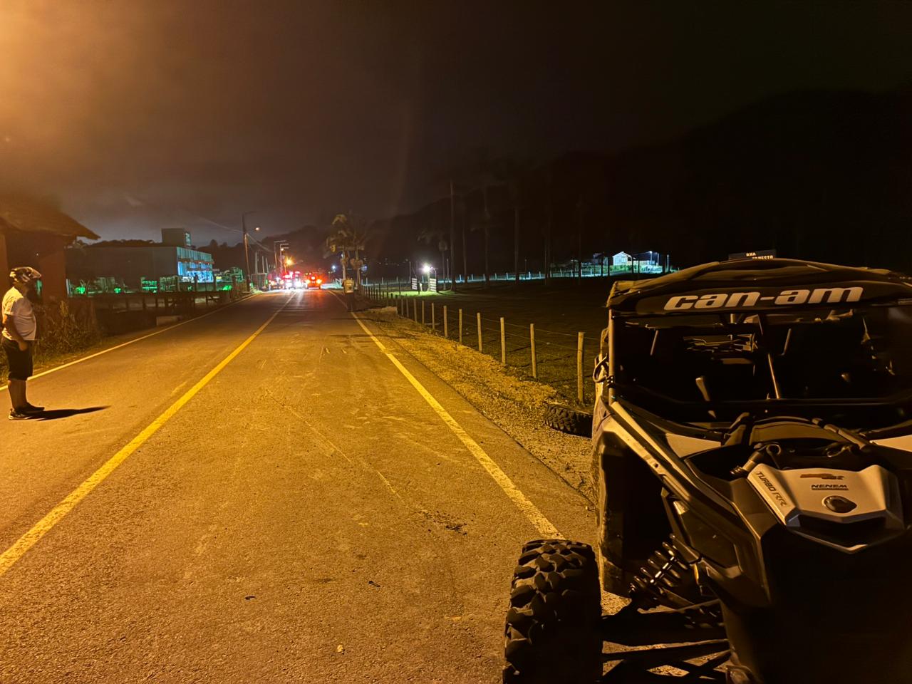 A polícia investiga o atropelamento de dois pedestres na noite deste domingo (7) em Camboriú como um homicídio culposo, quando não há intenção de matar. As vítimas foram encontradas pela Polícia Militar, que patrulhava o local e se deparou com o veículo off-road destruído e os corpos caídos nas margens da Estrada Geral do Braço.