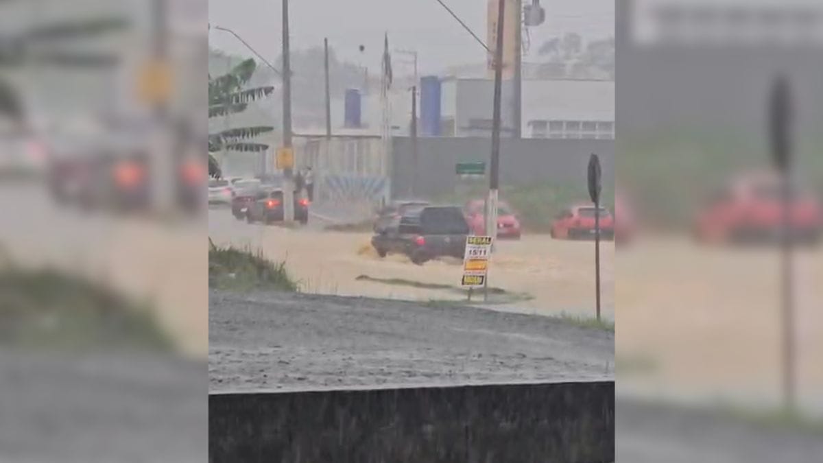 Em Balneário Barra do Sul, no Litoral Norte catarinense, cerca de 100 pessoas ficaram desabrigadas e mais de 200 ruas registraram pontos de enchente por conta das chuvas. De acordo com a Defesa Civil, o município registrou um acumulo de chuva de 161 milímetros nas últimas 24 horas.