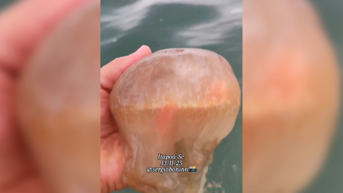 Com a chegada do verão, pescadores já flagram o mar tomado por águas-vivas em praias de Itapoá, no Litoral Norte de Santa Catarina. Um deles surpreendeu ao pegar os animais “gigantes” com a mão na abertura da temporada do animal no Estado.