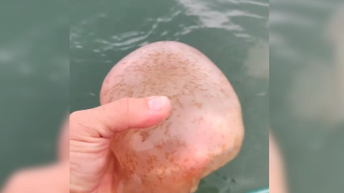 Apesar de assustar quem assiste em um primeiro momento, o pescador comenta que não tem medo de encostar na água-viva, por ser uma espécie inofensiva.