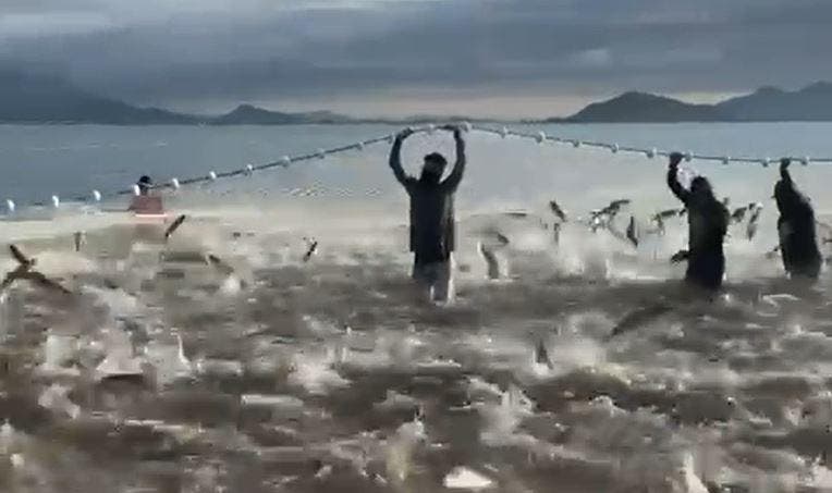 Vídeo mostra como foi cerco de tainha que terminou com 2 mil peixes capturados em SC