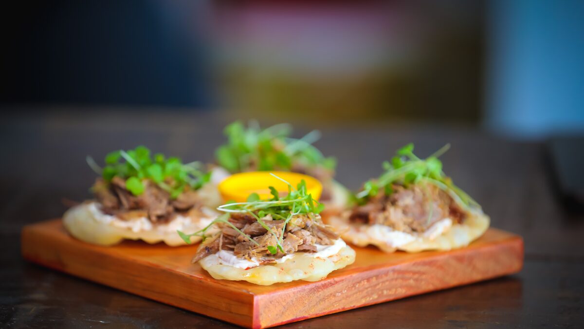 O petisco, que promete ganhar o coração dos jurados e levar a melhor no concurso gastronômico deste ano, é formado pelo crostini de costela defumada com creme de queijo gratinado, molho de laranja com shoyu e microverdes. O prato ainda acompanha maionese de costela.