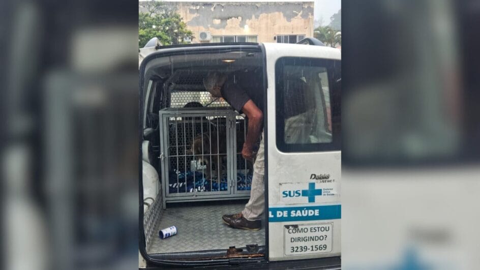 O Departamento de Bem-Estar Animal (Dibea) foi acionado e realizou o recolhimento do cachorro para os procedimentos necessários.
