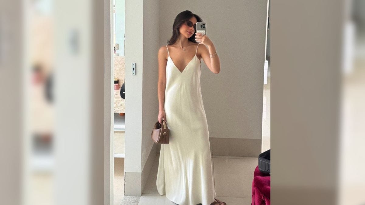Conhecido como “vestido que desliza”, o modelo é confeccionado em tecidos fluidos como cetim, seda ou viscose e traz leveza e sensualidade para o look.