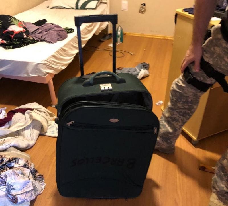 Conforme a polícia, antes do cumprimento do mandado, uma mulher foi filmada por populares caminhando pelas ruas da cidade com cães filhotes dentro de uma mala fechada, supostamente enquanto tentava vendê-los.