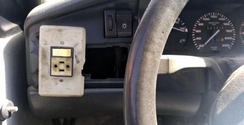 A Polícia Rodoviária Federal apreendeu nesta sexta-feira (16) um carro com um interruptor doméstico, no lugar do botão para ligar os faróis. O veículo foi encontrado abandonado, em um viaduto da BR-101, no município de Sangão, no Sul de Santa Catarina.