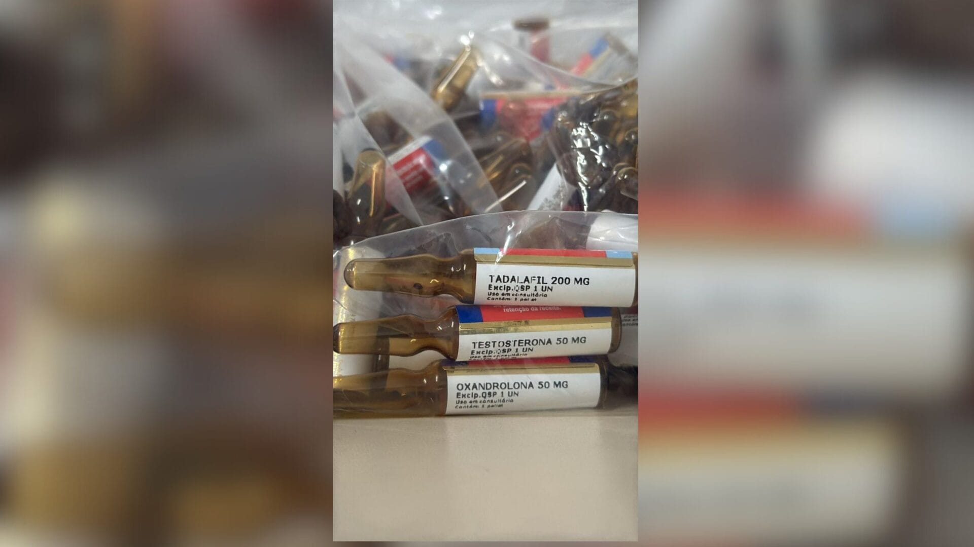 Nas fotos da operação divulgadas pela polícia, aparece o tadalafil, um medicamento inibidor indicado para o tratamento da disfunção erétil (impotência) e sintomas da hiperplasia prostática benigna (aumento da próstata) em homens. Outro medicamento encontrado foi a oxandrolona, um esteroide anabolizante usado para ganhar peso e massa muscular ou tratar transtornos relacionados ao metabolismo.