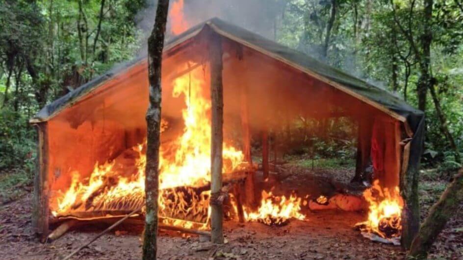 Durante a operação, os policiais destruíram um rancho de caça na mata, que era utilizado pelos caçadores como ponto de parada e também para matarem os animais.