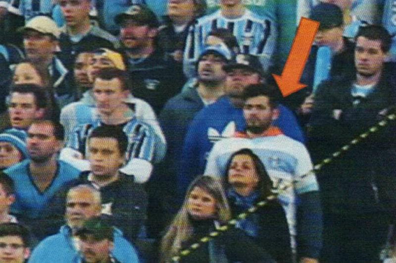 A análise das imagens permitiu aos investigadores colher uma foto mais nítida do torcedor que aparece com o rosto tapado por um capuz laranja. Após proferir as ofensas, ele teria subido os degraus das arquibancadas e retirado a proteção, revelando a face, como se vê abaixo:
