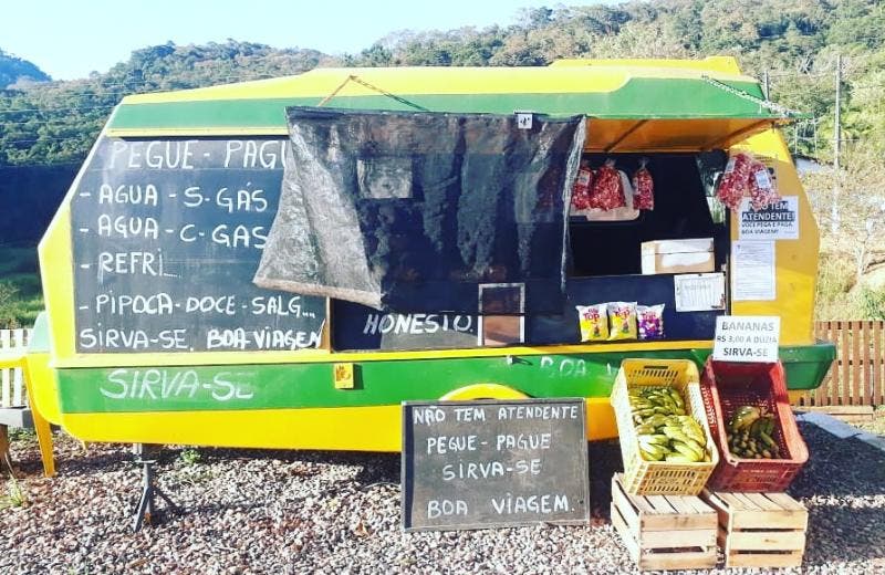 A diferença para as demais lojas de “beira de estrada”, é que o estabelecimento não tem atendentes. É cada um por si, e o dono confia na honestidade dos clientes — daí o nome “Dr. Honesto”.