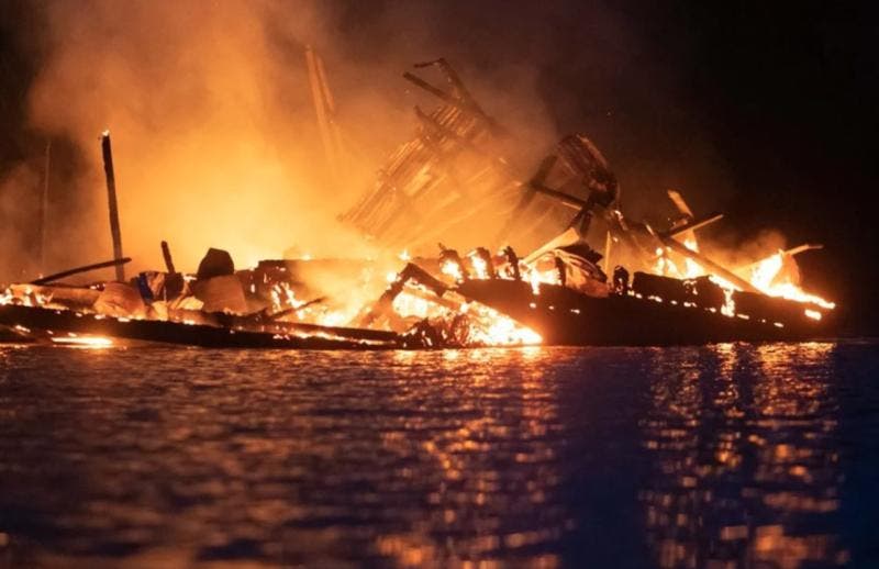No sábado, muitos dos garimpeiros haviam se dispersado para cidades vizinhas, segundo a ONG ambientalista Greenpeace Brasil, que também postou fotos de barcos pegando fogo em suas redes sociais.